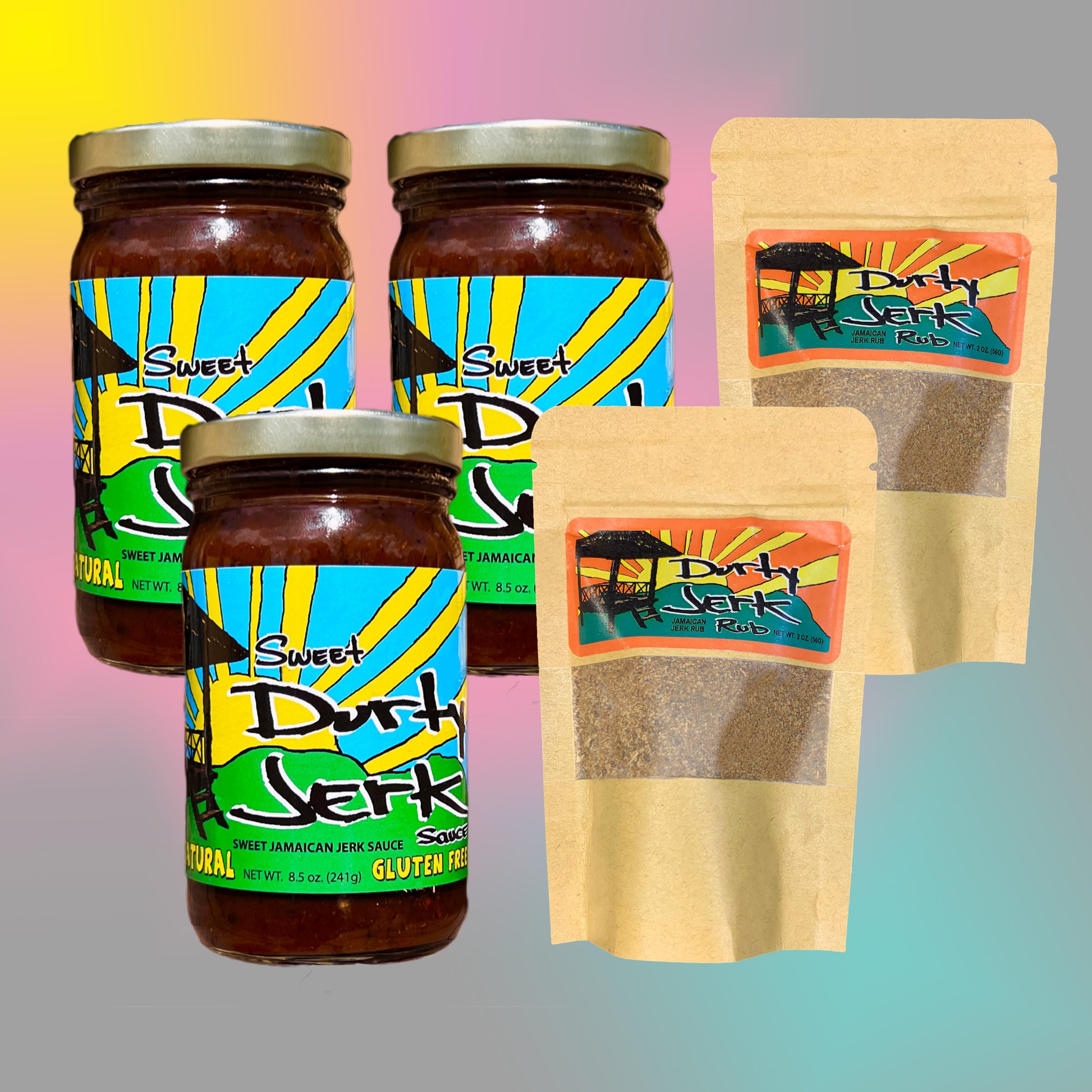 Sweet Durty Jerk Sauce, is a beautiful sweet balance of all-natural Caribbean flavor. Sweet up front followed by a distinctive jerk body that ends with a flavorful heat experience.