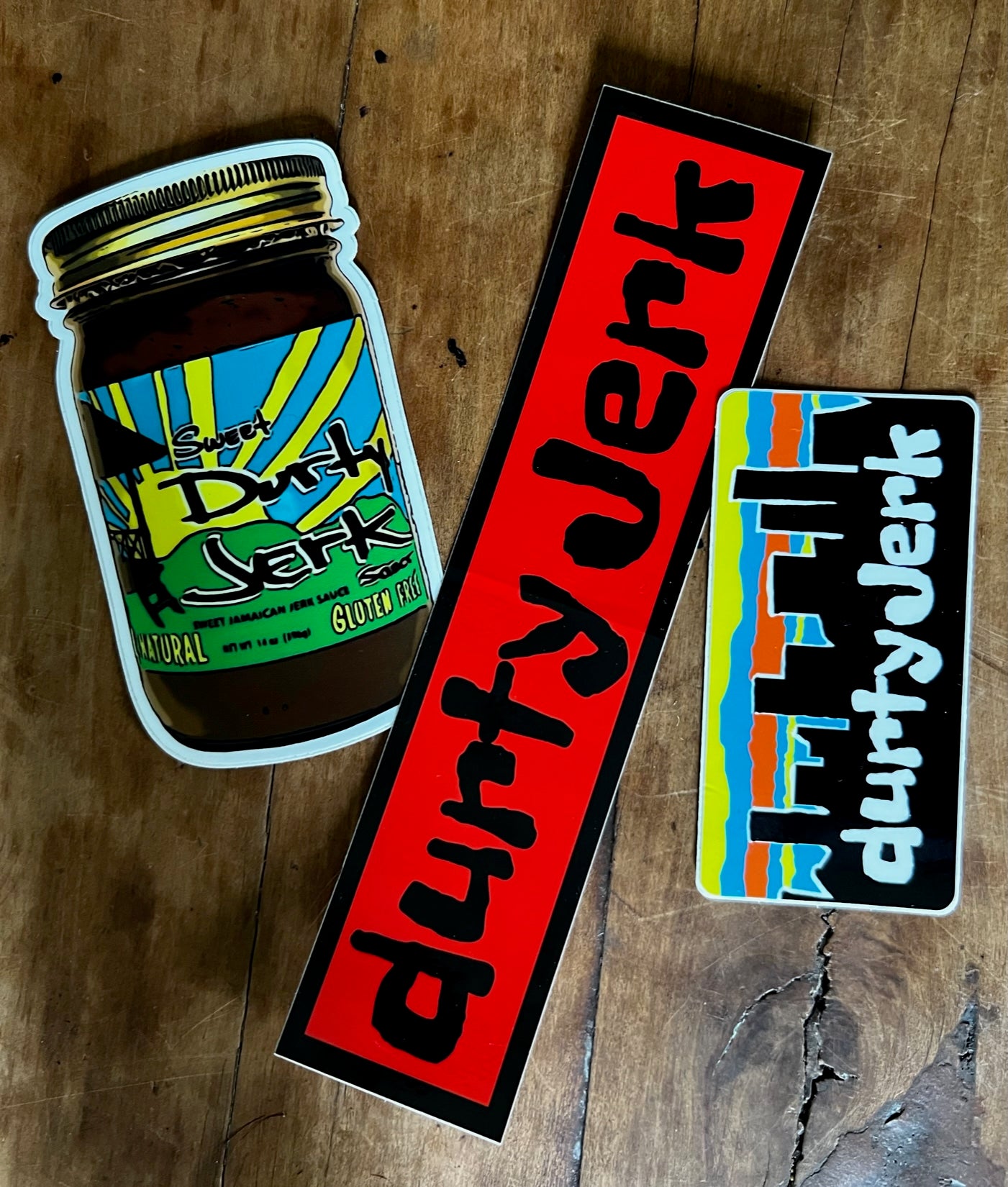 Black Red Durty Jerk bumper sticker 1 3/4 x 8 inches
